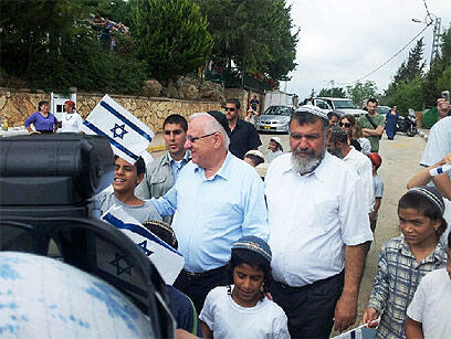 Knesset Speaker Reuven Rivlin visited the West Bank settlement of Itamar in a show of support for the the community where five family members were slaughtered earlier this year, and said he believes that "the land of Israel is ours in its entirety."