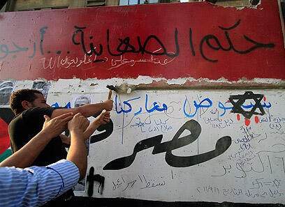 Egyptian mob breaks embassy wall (Photo: AFP)