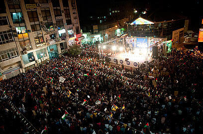 Palestinians celebrate in Ramallah (Photo: Ben Kelmer)