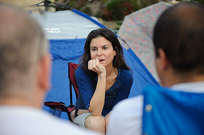 Ofra Strauss with social protesters (Photo: Ben Kelmer)