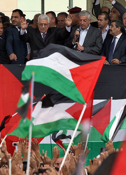 • A hero's welcome. Abbas in Ramallah (Photo: AFP)