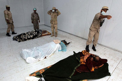 The three bodies had been held in cold storage in Misrata since Gaddafi was captured near his hometown of Sirte on Thursday. Gaddafi's body was on display until its decay forced the authorities on Monday to close the doors.