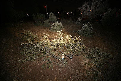 Damage at olive grove Thursday (Photo: Gil Yohanan)