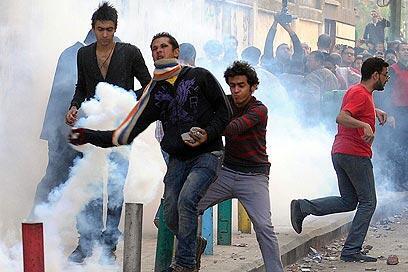 "Down with Tantawi," hundreds of protesters cried, referring to the country's military ruler Field Marshal Hussein Tantawi, as they lobbed rocks and whatever they could towards policemen who responded with heavy volleys of rubber bullets.