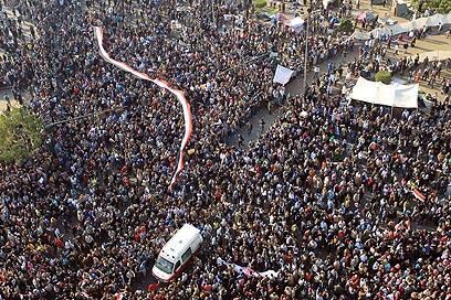 The announcement comes as tens of thousands of Egyptians gathered at Tahrir Square for a mass demonstration Tuesday while fresh clashes broke out elsewhere in Cairo as protests demanding the country's military rulers step down entered a fourth day.