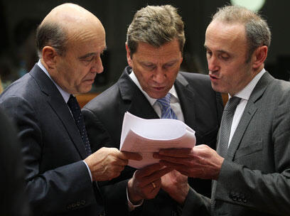 French Foreign Minister Alain Juppe said after meeting his counterparts in Brussels that the EU would work with its partners to offset any shortfall if an oil embargo were imposed.