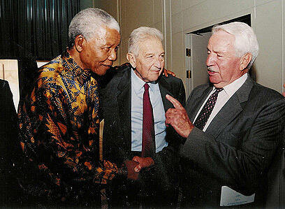 Cohen (R) with Ezer Weizman, Nelson Mandela (Photo: Oranit)