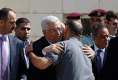 Abbas welcomes freed prisoners (Photo: Reuters)