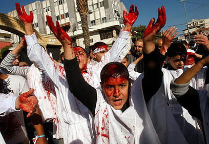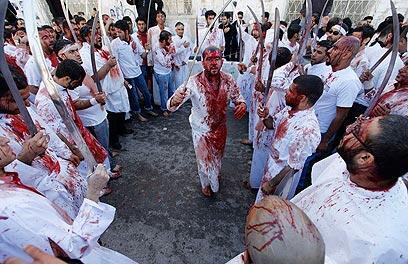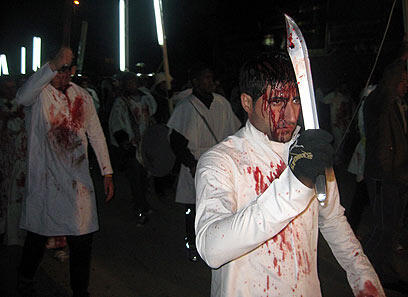 Millions of Shiites, who constitute the minority sect in most Muslim countries, went out on the street for the traditional mourning procession, in which they beat their chests, whip their backs with chains, and cut themselves with swords and knives until blood is shed.