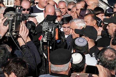 • 'The truth will come out.' Katsav speaks to reporters (Photo: Eliad Levy)