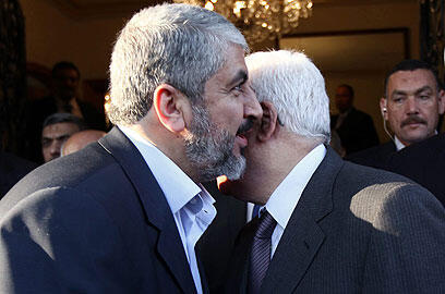 Palestinian agreement? Abbas and Mashaal (Photo: AFP)