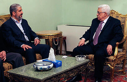 Frenemies? Mashaal and Abbas (Photo: Reuters)