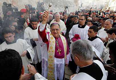 Jerusalem's Latin patriarch in Bethlehem (Photo: Reuters)