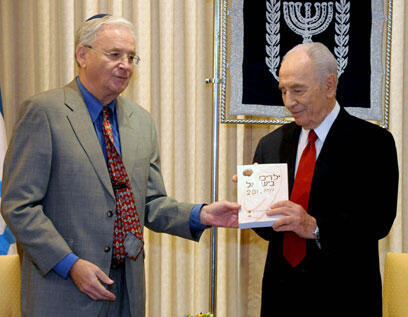 'Children are the future.' Kadman presents report to Peres (Photo: Marc Neiman)