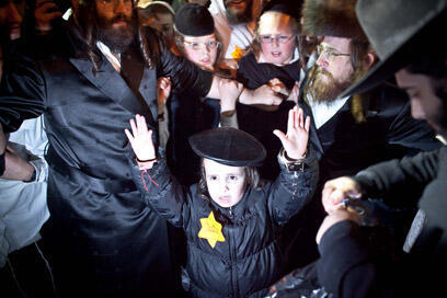 Asked why he was wearing a yellow patch, one protester told Ynet it was a gesture symbolizing the secular population's "Nazi behavior" toward the ultra-Orthodox public.