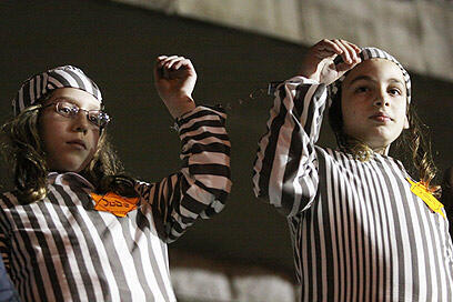 Two other protesters, US citizens attending a Mea Shearim yeshiva, said they were attending the demonstration "for fun." Also spotted in the crowd were two children wearing striped pajamas, similar to the uniform worn by concentration camp prisoners during the Holocaust.