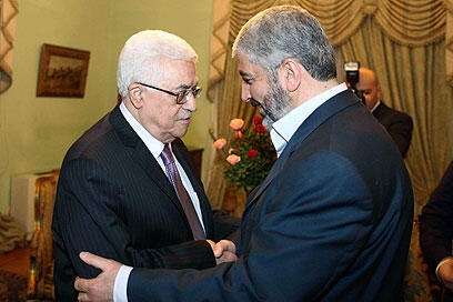 PA leader Abbas (L) with Haniyeh (Photo: Reuters)