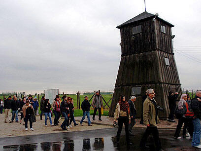 Ynet has learned that as the group stood near the mountain receiving a briefing on the death camp and its horrors, one of the students walked into the site and treaded on the ashes in spite of the fact that to do so is clearly prohibited.