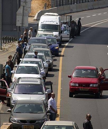Observing the siren on Ayalon Highway (Photo: AFP)