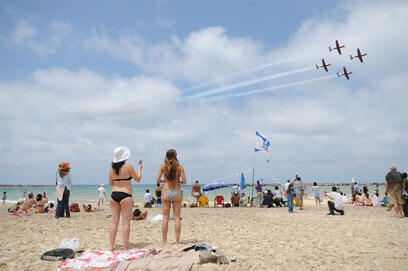 Tel Aviv beach goers enjoy flyover (Photo: Yaron Brener)