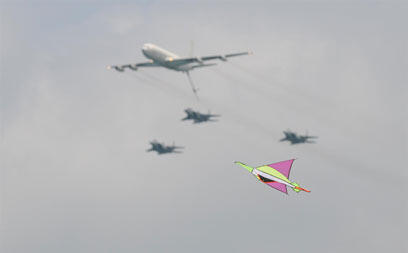 Planes demonstrate refueling over Tel Aviv (Photo: Yaron Brener)