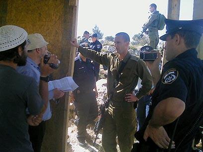 During the incident, police and army forces were razing an illegal structure erected in the West Bank outpost Hill-18, near Kiryat Arba. Settlers in the area clashed with the security forces, but no injuries or arrests were reported.