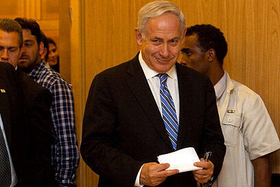 Netanyahu after dramatic faction meeting (Photo: Ohad Zwigenberg)