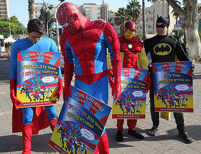 Dozens of employees at a secret unit within the Defense Ministry chose an original way to protest in front of the Kirya base in Tel Aviv, using actors dressed up as Batman, Superman and other superheroes.