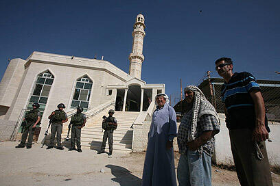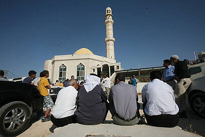 Residents gather outside mosque (Photo: Gil Yohanan)