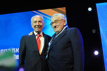 President Shimon Peres presented veteran US diplomat Henry Kissinger with an award honoring his "significant contribution to the State of Israel and to humanity."