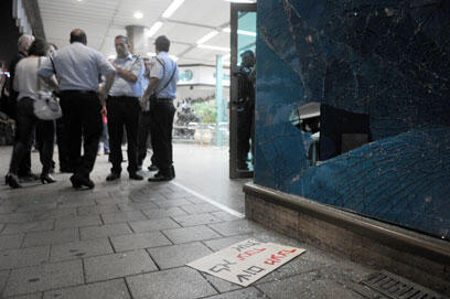 Soon after, violent clashes erupted at various locations across Tel Aviv, including at banks near the city's Rabin Square. Protestors shattered windows at some banks, in one case making their way into the bank with a tent, the symbol of last year's housing protest, and barricading themselves inside.