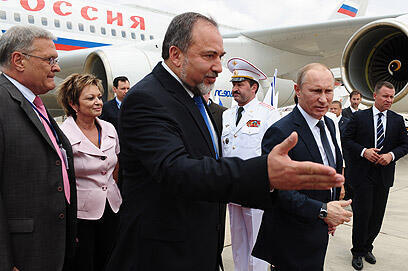 Putin and Lieberman at Ben Gurion Airport (Photo: Kobi Gideon, GPO)