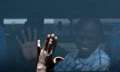 The migrants were brought to Ben-Gurion Airport Monday onboard buses from Arad and from Tel Aviv ahead of their departure.