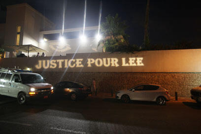 A friend of the late Lee Zeituni who was killed in a hit and run in September 2011, projected a light display with the words "justice pour Lee" (justice for Lee) on the wall of the ambassador's house. "Today we did not come here for demonstrations, we are past that phase," Roi Peled told Ynet.
