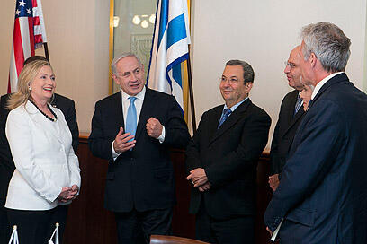 Clinton with Netanyahu and Barak (Photo: Ohad Zwigenberg)