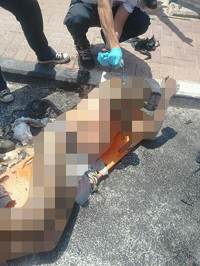 An Magen David Adom spokesman said that, "We received a call about a man who set himself on fire at around 11:55 am. Paramedics scrambled to the scene found a man, lying on the ground, with apparent burns over 80% of his body. He was treated on site and then rushed to hospital."