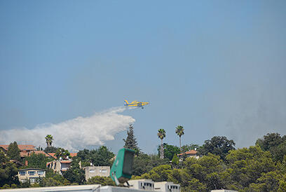 Fire extinguishing jet over Kiryat Tivon (Photo: Ziv Rosenzweig)