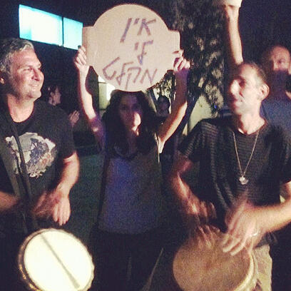 Demonstrations in front of Barak's home (Photo: Tamar Zandberg)