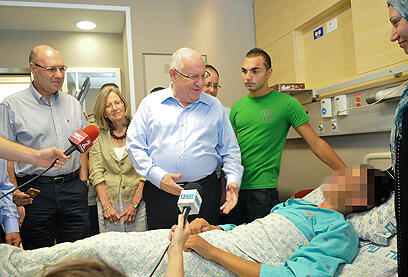 Knesset Speaker Reuven Rivlin arrived at the Hadassah Ein Kerem Medical Center on Thursday to visit the Arab teen who was injured in a near lynch carried out by Jewish teens in Jerusalem's Zion Square last Thursday.