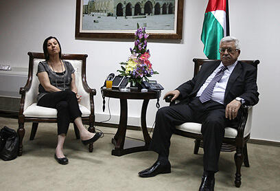 • Abbas with Meretz Chairwoman Zahava Gal-On (Photo: AFP)