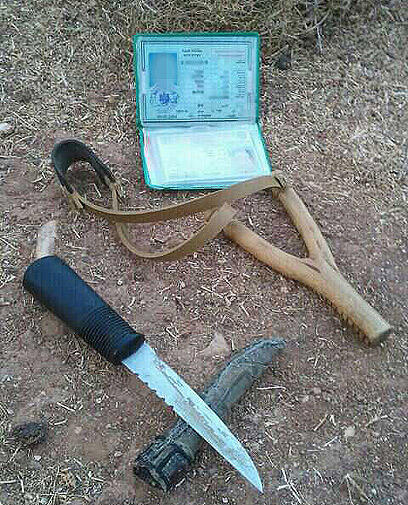 Knife, slingshot found on suspect (Photo: Yair Shoham)