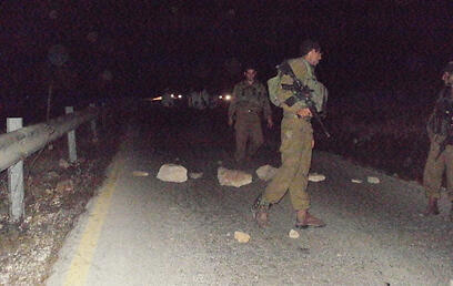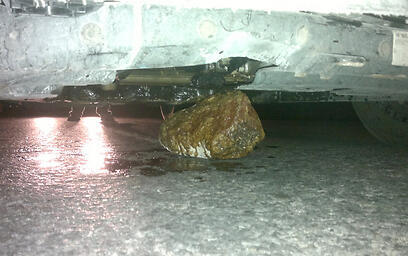 Rock meant to cause car crashes (Photo:Yair Shohan, Tazpit News Agency)