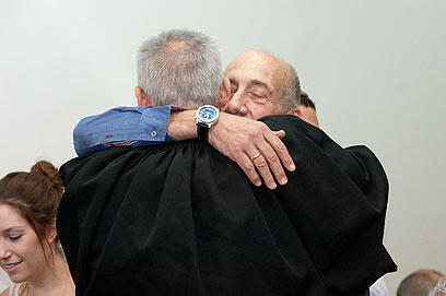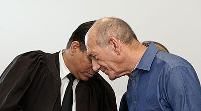 Olmert and his attorney Navot Tel Zur (Photo: Omer Meron)