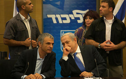 Netanyahu and Kahlon, Likud session (Photo: Ohad Zwigenberg)