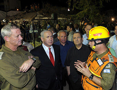 IDF chief of Staff Benny Gantz visited the site of a simulated school collapse in Holon. "The IDF's emergency readiness is also applicable to war scenarios, not just natural disasters. Cooperation between the various bodies is critical.