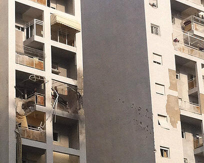 Ashdod building hit by rocket (Photo: Ron Benishu)