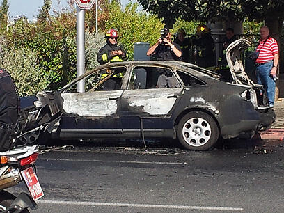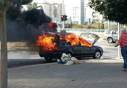 Car in Holon on fire (Photo: Gush Dan rescue services)