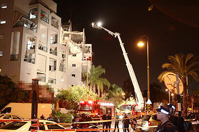 Rishon Lezion building after direct rocket hit (Photo: Avi Muallem)