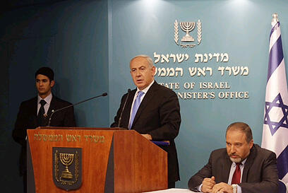 PM, FM in press conference (Photo:Ohad Zwigenberg)