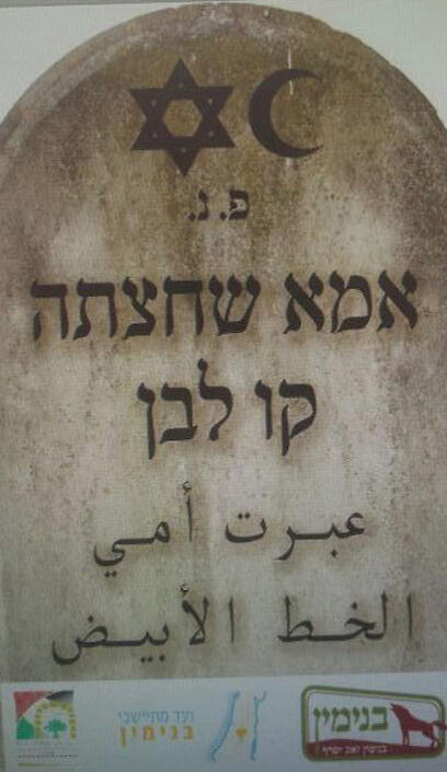 'Here buried a mother who crossed a white line' (Photo: Binyamin Settlers′ Committee)